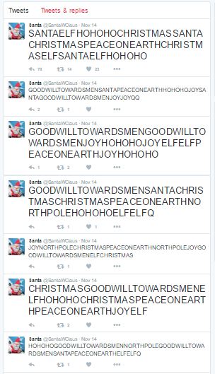 With the business card we go to Twitter and look and Santa’s tweets, probably full of fun and magic, right? :)