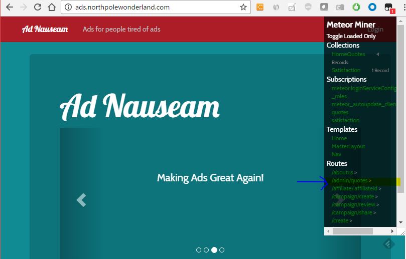 This way I found an URL that didn’t have a link from the main website http://ads.northpolewonderland.com/admin/quotes