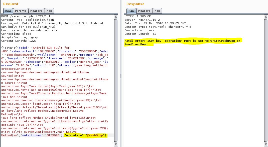 Using BurpSuite repeater I made changes to the operation parameter to find a verbose message that gave me the only two options that were acceptable, WriteCrashDump and ReadCrashDump.