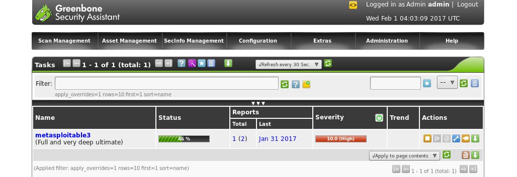 Task Progress in Greenbone for OpenVAS
