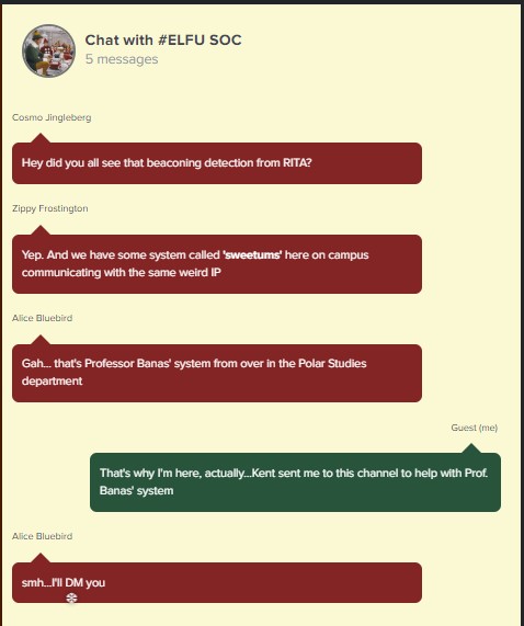 Hi, Iâm Dr. Banas, professor of Cheerology at Elf University. This term, Iâm teaching âHOL 404: The Search for Holiday Cheer in Popular Culture,â and Iâve had quite a shock! I was at home enjoying a nice cup of GlĂžgg when I had a call from Kent, one of my students who interns at the Elf U SOC. Kent said that my computer has been hacking other computers on campus and that I needed to fix it ASAP! If I donât, he will have to report the incident to the boss of the SOC.