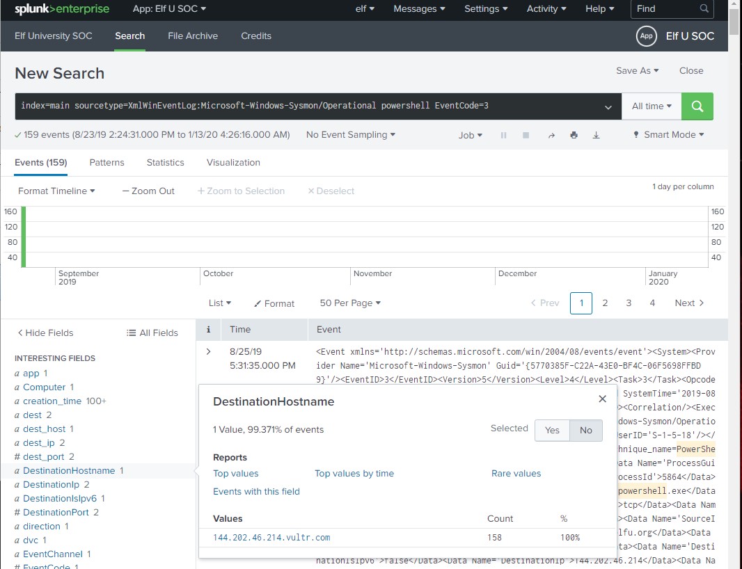 Alice needs us to look for the FQDN of the C&C using the Sysmon logs in Splunk to determine where is the PowerShell connecting. She even provides a link to a blog about Splunk and Sysmon Search string to start our investigation.