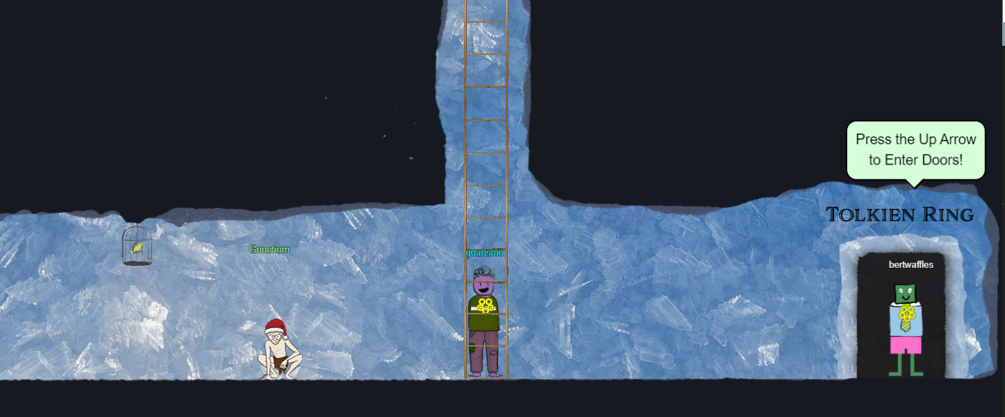 So we go down the cave to find a door that says Tolkein Ring, this is our first real challenge, but next to it is our new friend Grinchum.